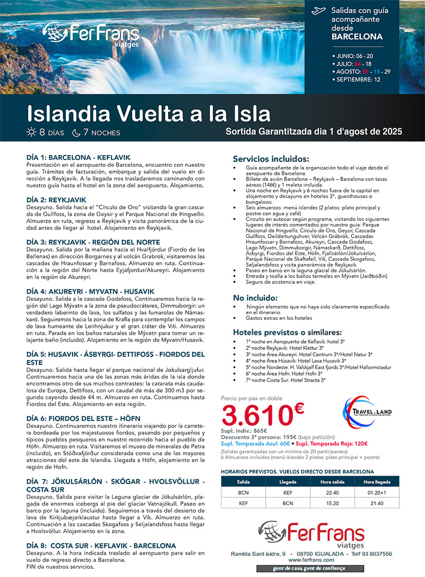 8 dies de viatge + Guia acompanyant + Mitja pensió + Totes les visites indicades