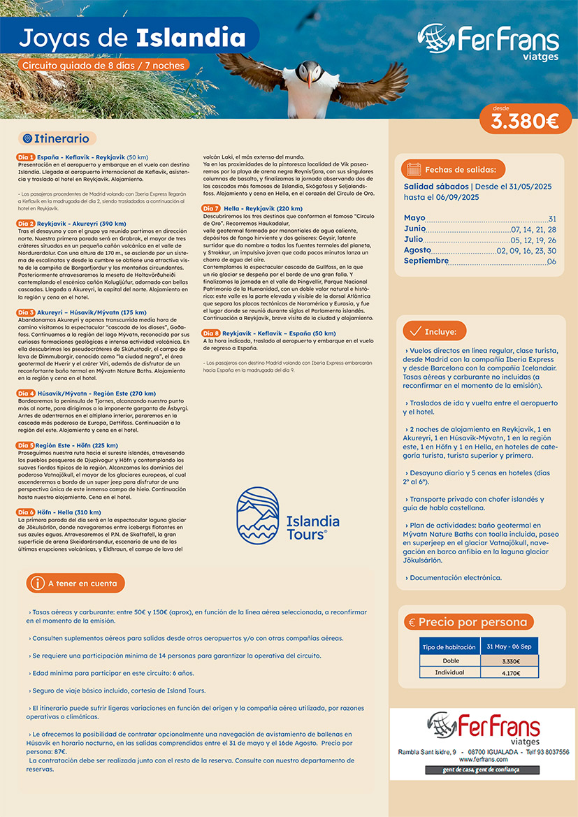 8 dies de viatge + sortides en grup + Guia al destí + Mitja pensió i Visites indicades