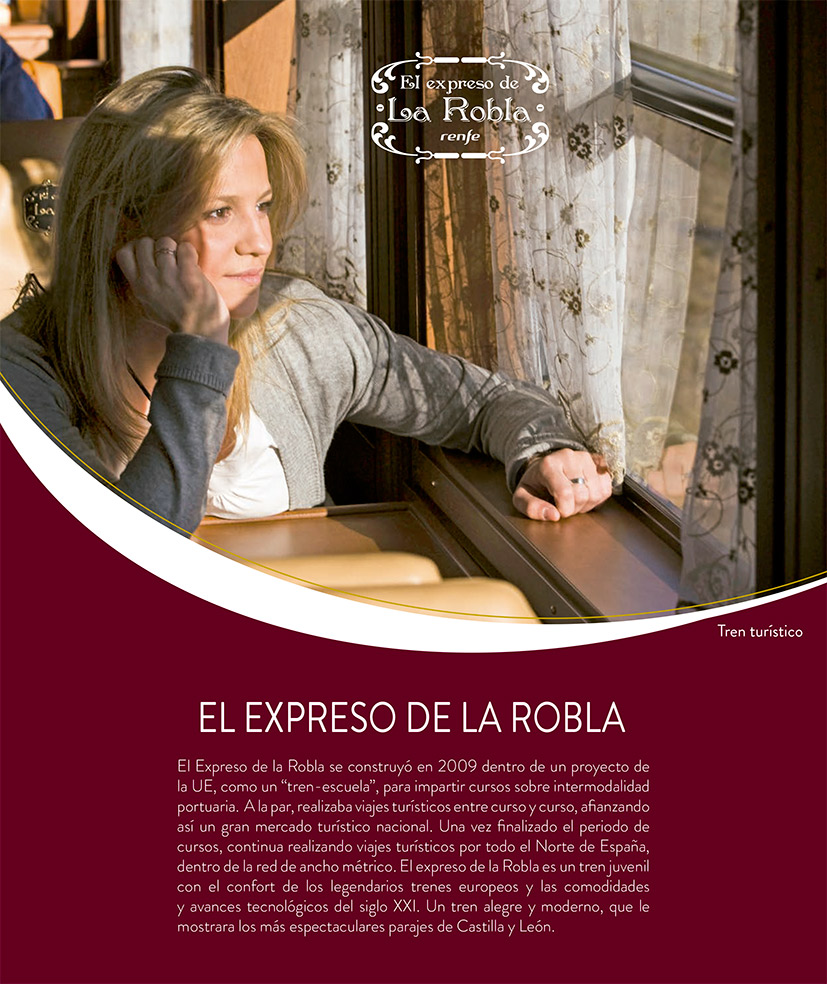 L'exprés de la Robla és un tren juvenil amb el confort dels llegendaris trens europeus i les comoditats i avenços tecnològics del segle XXI. Un tren alegre i modern, que li mostrés els paratges més espectaculars de Castella i Lleó