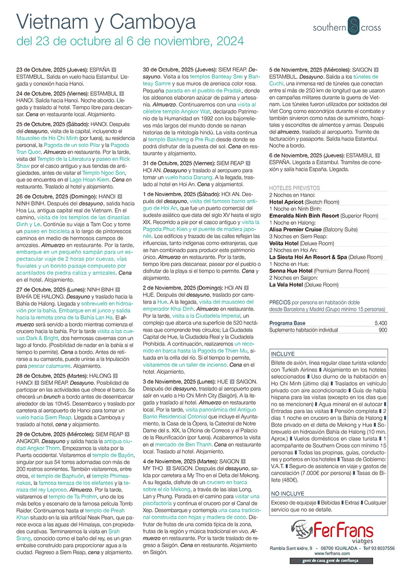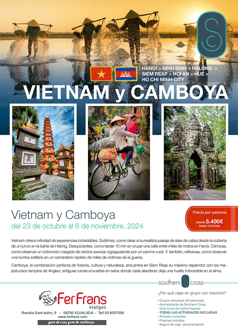 VIETNAM I CAMBODJA Del 23 d'octubre aal 6 de novembre 13 dies de viatge amb Grup reduït + Guia acompnyant + Pensió Completa + Totes les visites + Assegurança de viatge i cancelació Veure PDF 5.400 €